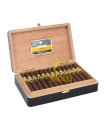 The Cohiba Maduro 5 line ushered in the first regular production Maduro-wrapped Cohiba and has become a favorite choice for cigar smokers wanting an alternative take on the classic Cohiba experience. Cohiba Secretos Maduro 5 cigars are great examples that feature a blend of Vuelta Abajo tobaccos covered by a 5-year-old Maduro wrapper and shaped into a small 4 1/3” x 40 size.