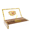 Each cigar's rich and velvety Vuelta Abajo-grown tobaccos offer never-ending streams of pepper, rosehips, chocolate, Spanish cedar, and candied caramelized walnut flavors. An earthy core is at the heart of the cigar's medium-bodied character. Spicy and creamy notes put an exclamation point on a harmonious finish.
